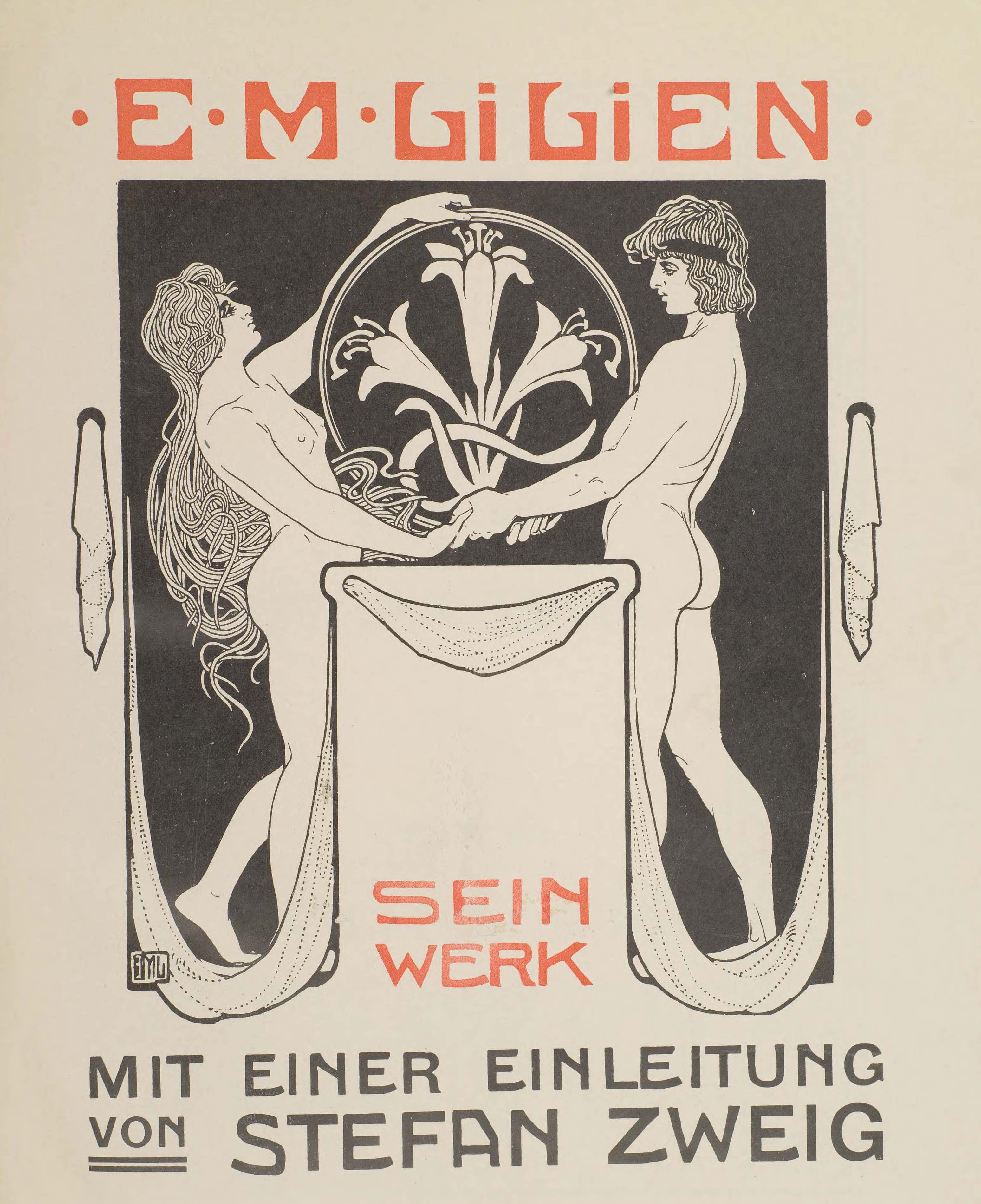 Born in Drohobicz, Galicia (then part of the Austro-Hungarian empire) in 1874 in poor circumstances, E. M. Lilien's artistic inclinations became evident early in life. He became an apprentice for a sign-maker as a youth and subsequently attended the Academy of Art in Krakow, where he studied under Polish history painter Jan Matejko. In 1899 Lilien moved to Berlin, where he joined the artists' group Die Kommenden, which included Carl Busse, Stefan Zweig, and Börries Freiherr von Münchhausen. Lilien illustrated Münchhausen’s book Juda in 1900, with his soon-to-be characteristic Art Nouveau style.